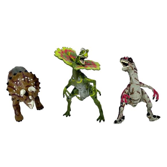 Jurassic Park 3 Dilophosaurus Velociraptor Triceratops Lot of 3 Hasbro 2000