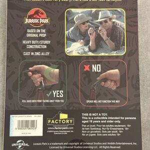 Hold your beer and hold onto your butts because the creative masterminds at Factory Entertainment have buried their heads in various amber elements and dug up the perfect collectible for clever girls... and boys! The Jurassic Park Fossil Raptor Claw Metal Bottle Opener is based on and scaled to the size of the original prop used in the hit movie Jurassic Park. This heavy duty bottle opener is cast in zinc-alloy, which means it's sure to last and open your favorite beverages for the next 65 million years, or until an extinction level event happens. Either way, none of us will remember if the Raptor Claw Bottle Opener is doing its job right! Measures about 6-inches long x 4-inches wide.Ages 18 and up.