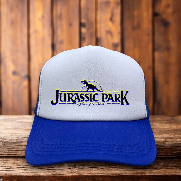 Jurassic Park Mens Trucker Hat Blue Snapback 90s Dinosaur Movie Clever Girl Cap