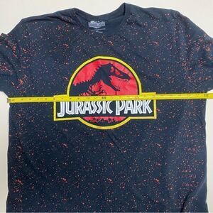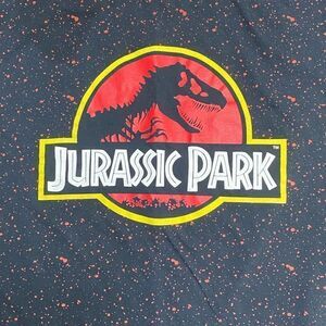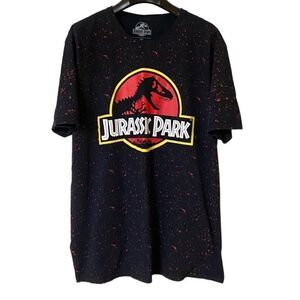 Jurassic Park Men’s Unisex Black|Red Splattered Classic T-Rex Logo Shirt Sz 2XL