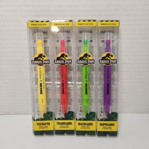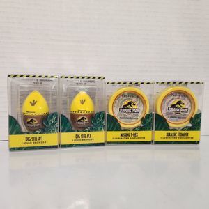 Jurassic Park Profusion Cosmetic Make Up Set with mirror is a 2023 Walmart Exclusive. This set includes 2 Liquid Bronzers, 2 Illuminating Highlighters, 4 Neon Liner & Stamp Duos, and hand mirror. Perfect for Jurassic Park collectors and makeup enthusiasts.