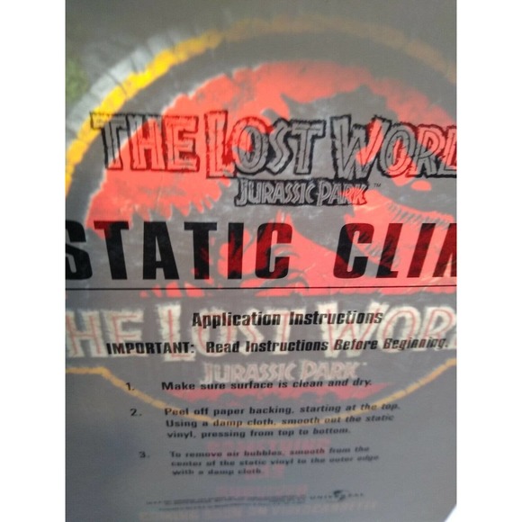 Jurassic Park The Lost World Movie Static Cling Window Artwork Dinosaurs 1997