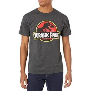 Jurassic Park Size Medium Heather Gray Short Sleeve Graphic Print T-Shirt Casual