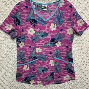 Jurassic Scrub Top Sz S Park Dominion Universe Studio Dino Skin Floral Pink Blue