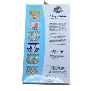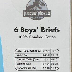 Jurassic World Boys 6-Pack Briefs Size 2T/3T 100% Cotton NIB