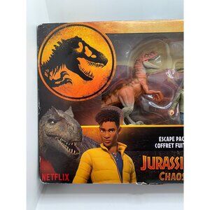 This Jurassic World Chaos Theory Ben Escape Pack includes detailed figures of Ben, Atrociraptor "Tiger," and Dilophosaurus. Crafted with high-quality materials, this set offers a realistic play experience, ideal for fans and collectors of dinosaur-themed toys. The set encourages imaginative play and storytelling, making it an engaging and educational toy.