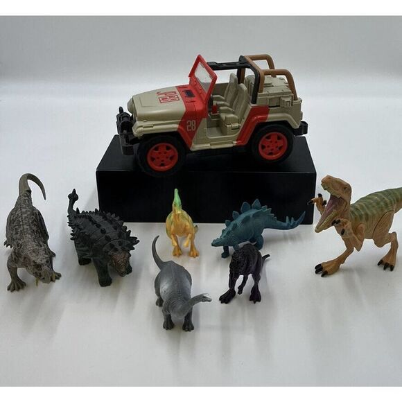 Jurassic World Jeep Wrangler Remote Control Vehicle & Dinosaurs (2). No remote and untested.
