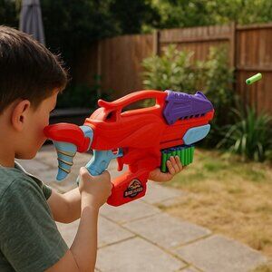 Jurassic World Pyroraptor Blaster Clip-Fed Pump Action – New, 80ft Range