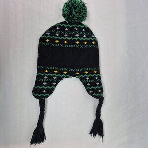Jurassic World Unisex Youth Beanie w/Tassels Dinosaur Fossil Black/Green