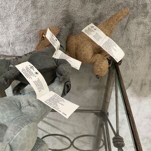 Pre owned lot of 3 plush dinosaurs T-Rex, Giganotosaurus & Velociraptor Jurassic World Domination series.