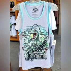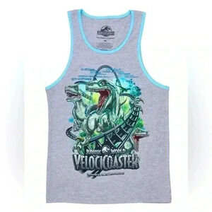 Jurassic World Universal Studios Parks Velocicoaster Raptors Gray Tank Top Shirt