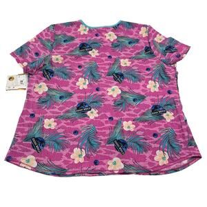 Jurassic World Womens Size 2XL Short Sleeve Pink V Neck Print Medical Scrub Top