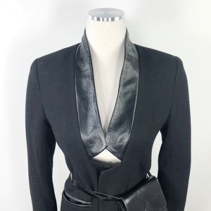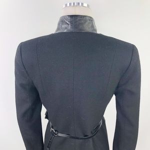 Ju's Black Wool Leather Fitted Mid Length Blazer L