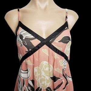 Ju's Sleeveless Dusty Pink Black Whimsical Peak A Boo Lace Hem Dress Size M