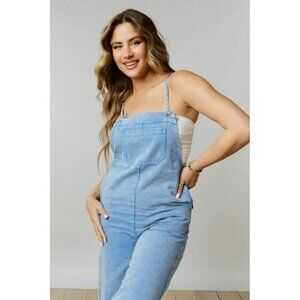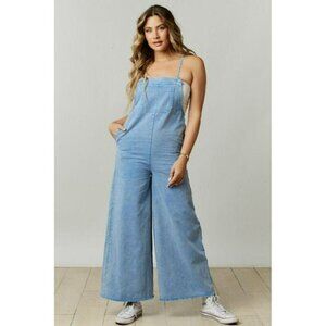 Just A Normal Girl Washed Denim Jumpsuit in Blue