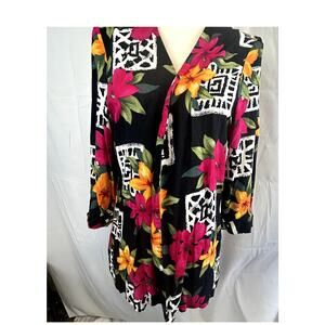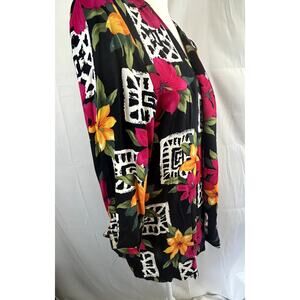 Just Amanda Vintage size 10 over shirt open 3/4 sleeves USA Rayon black print