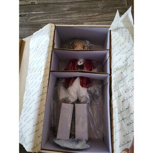 This collectible porcelain doll comes in its original packaging, complete with an accessory package. A timeless addition to any collection, it reflects intricate craftsmanship and attention to detail.