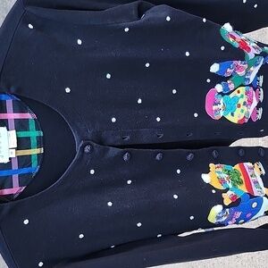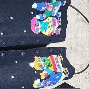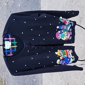 Just B Beaded Crew Neck Button up Embellished Snowman Sz. M Sweater Cardigan