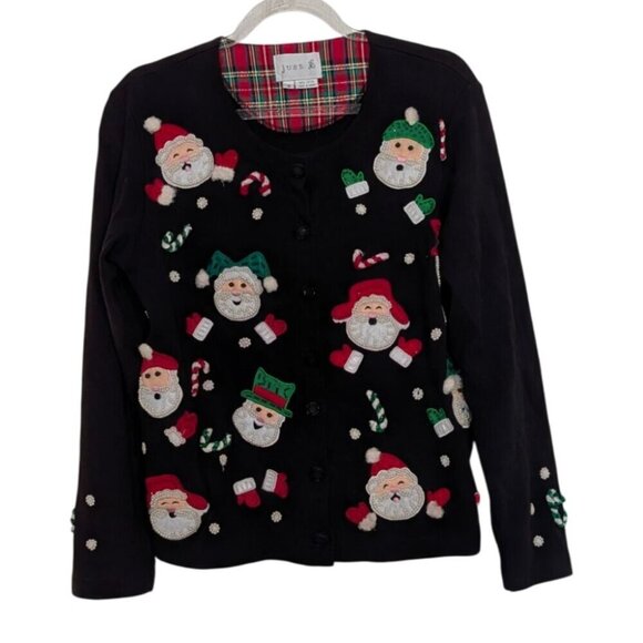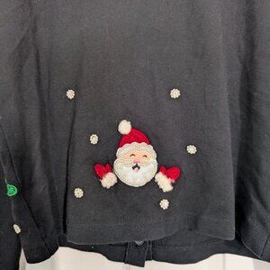 Just B Not So Ugly Christmas Cardigan Womens Size Small Black Beaded Santa