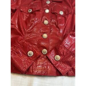 Just B Shiny Red Metallic Jacket w/Decorative Buttons Small Snakeskin Print