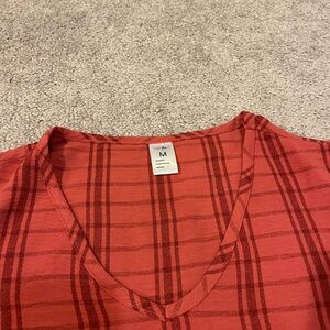 New with tags! Pretty red color with plaid like pattern! V-neckline with 3/4 length sleeves! Almost has a cute tie on the bottom! Perfect on its own or for work! Offers always welcome!