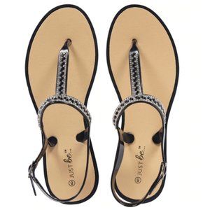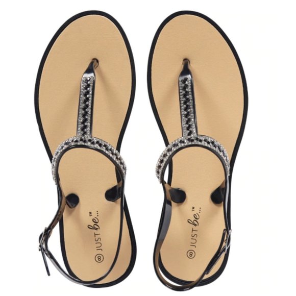 Just Be… Black Jeweled T-Strap Sandals - Size 8