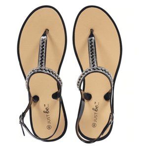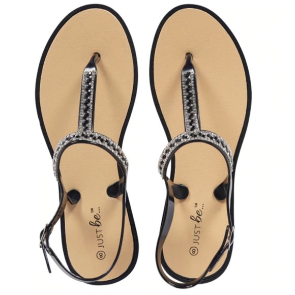 Just Be… Black Jeweled T-Strap Sandals - Size 9