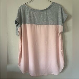 “Just Be” Brand Gray and Pink Colorblock Blouse, size Large