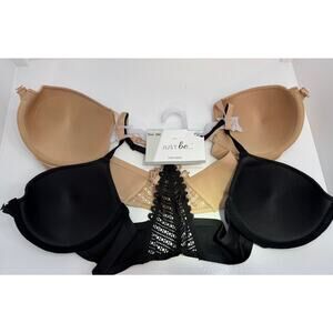 Just Be Intimates Front-Closure Laser-Cut Bra 2-Pack Size 38C Black & Nude NWT
