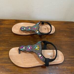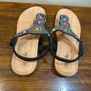 Rhinestone just be sandals wood grain sole gladiator elastic Size 8
