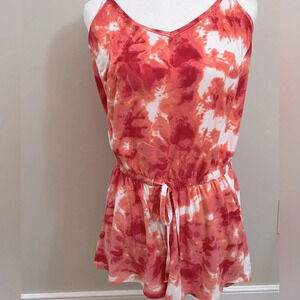 Gently used, excellent condition, Just Be, Size Medium, Tie dye super soft romper, pajamas, loungewear,stretchy, front tie elastic waist, adjustable straps,2 front pockets, v-neck, loose fit, please see pictures for approximate measurements