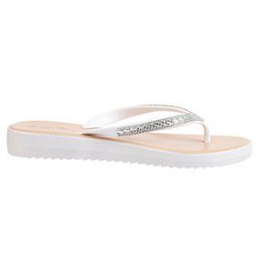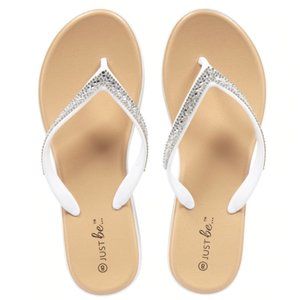 Just Be⦠White Jeweled Line Flip-Flops - Size 6