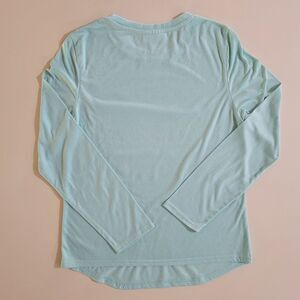 Just Be Women's Aqua Long Sleeve Crewneck Graphic Front Shirt