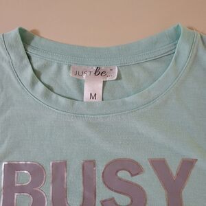 Get comfy in this women's graphic tee from Just Be. Featuring long sleeves and a crew neckline, this soft jersey top makes the statement BUSY BEING LAZY and is weekend ready for leisure time.