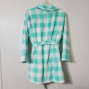 Just Be Womes One Size Fleece Robe Mint Green & White Check Gingham
