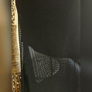 Elevate your style with this chic black maxi skirt (ankle length). Featuring a stylish fringe detail, it's perfect for any occasion. Skirt is semi see-through from above knee with a netting material. 'Like new' condition.