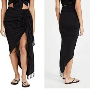 Just Bee Queen Tulum Skirt Black Linen Asymmetrical Boho Beach XS
