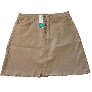 Just Black Denim Women’s M Odyssey Khaki Mini Skirt Tan Raw Hem Button Fly NWT