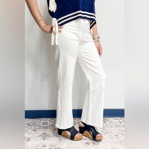 Just Black Patch Pocket Wide Leg Jeans in Off White Denim BP433J