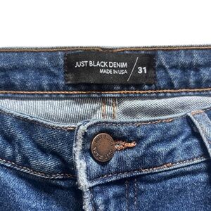 Just Black Vintage Straight Leg Jeans Size 31, 28” inseam. Experience timeless style with these Just Black straight leg jeans in a classic blue hue. Featuring a medium-to-high rise and a relaxed fit, they offer a comfortable yet structured look. The vintage-inspired wash and raw hem add a touch of authenticity to your wardrobe. Excellent condition, no flaws!