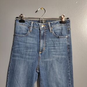 Just Black women's hi-waist, flare jeans with split openings, size 26.