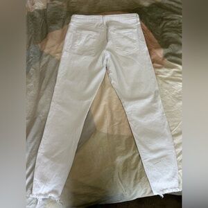 Stylish white jeans with frayed hems. Perfect for casual wear. Comfortable fit.