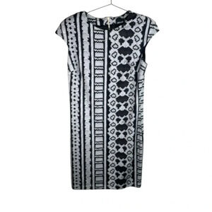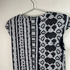 Just Cavalli Black And White Printed Short Sleeve Knee Length Dress