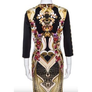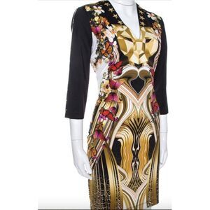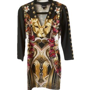 Just Cavalli Black Geometric Butterfly Print Jersey Fitted Dress Size 38 US 2