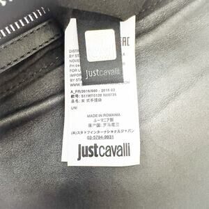 Just Cavalli Black Leather Studded Over The Shoulder Crossbody Tote Purse MINT