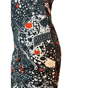 Just Cavalli Black Punk Rock Print Dress Stretchy Fabric Size 44 Fit Medium