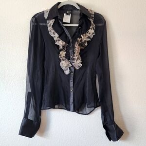 Just Cavalli Black Sheer Silk Ruffle Blouse 42
