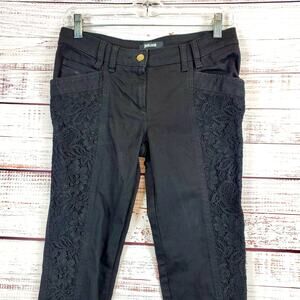 Just Cavalli Black Y2K Whimsigoth Skinny Jeans Low Rise Mesh Floral Lace Trim 28