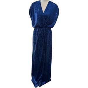 Just Cavalli Blue Sequin V Neck Maxi Dress with Slit Size 40