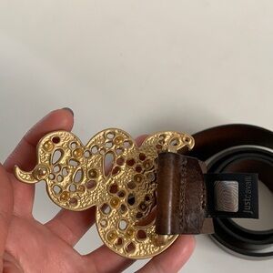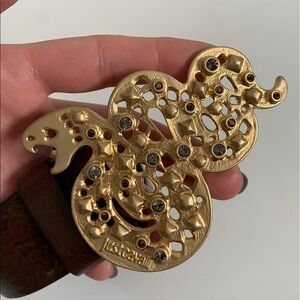 Just Cavalli Brown Leather Gold Buckle Snake Belt